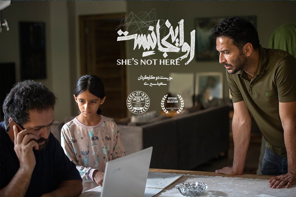 فیلم کوتاه «او اینجا نیست»؛ روایتگر زندگی کیانا دختر ۹ سالهای است که بر اثر اتفاقی ناخواسته از مادرش جدا افتاده و دچار تروما شده است. این اثر در اولین حضور بینالمللیاش در بیستوسومین دوره از جشنواره ایسکیا ایتالیا اکران شد.